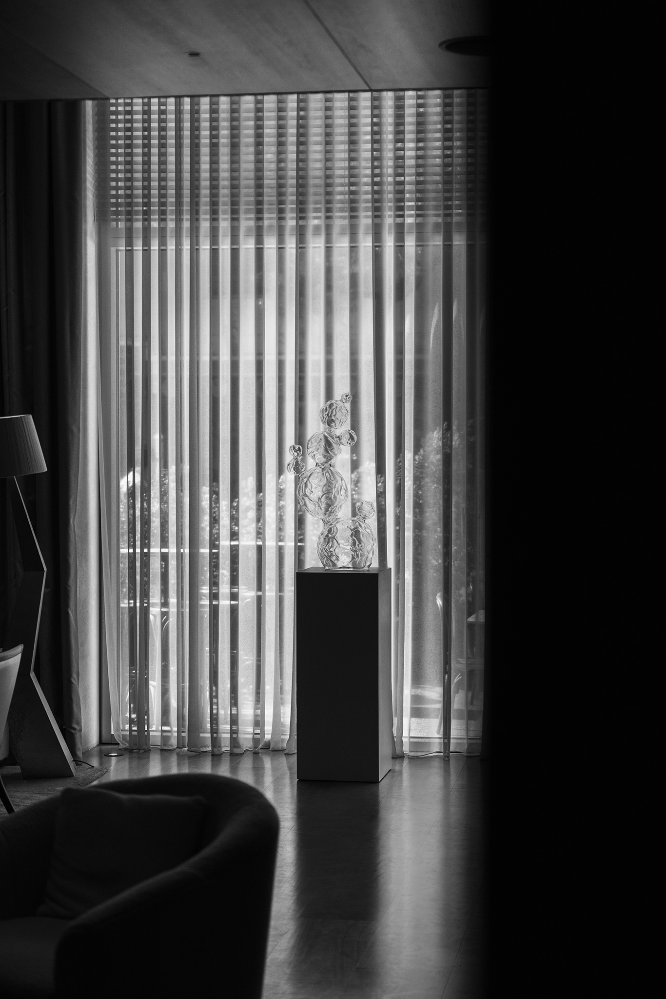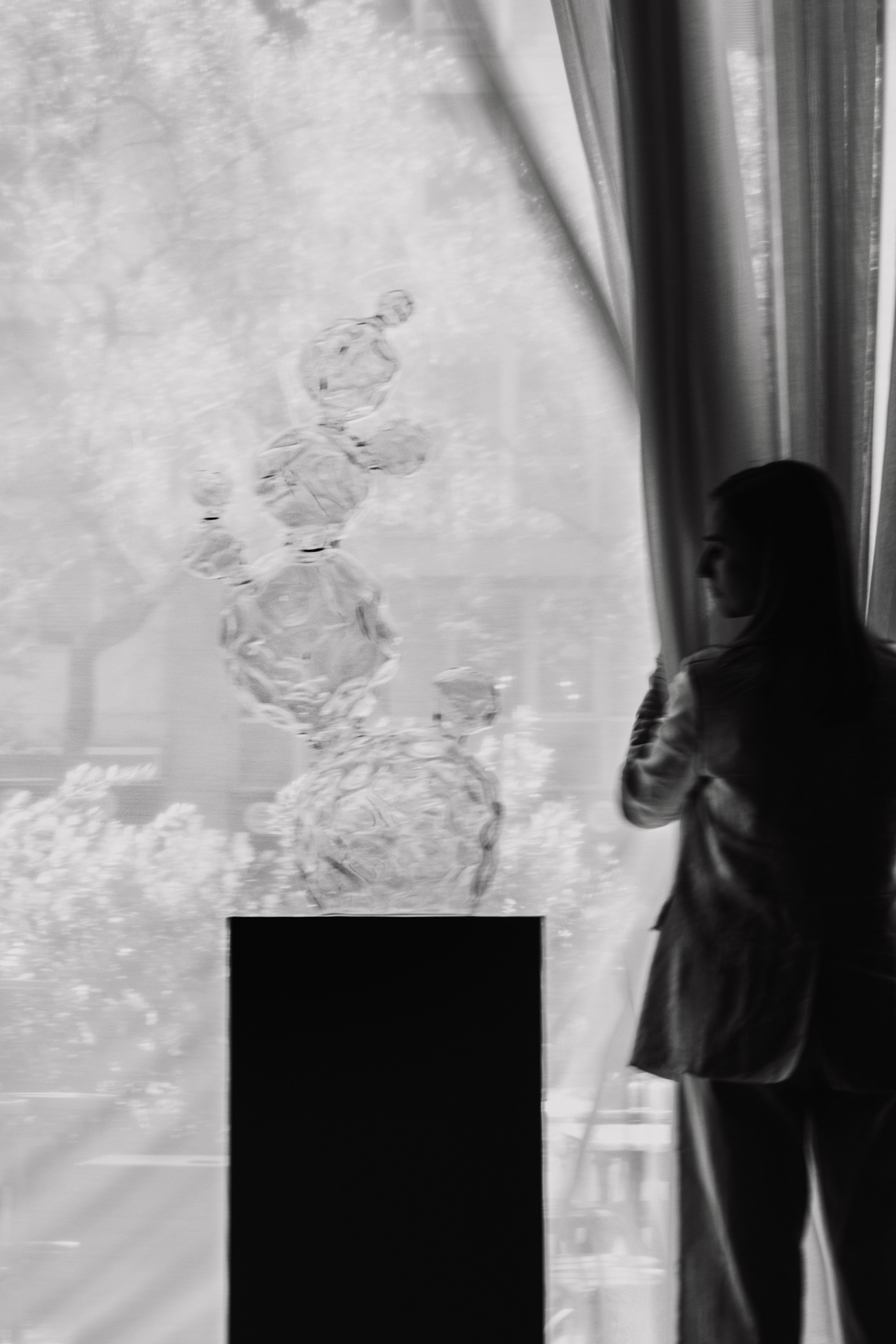 Captured at Edition Hotel Barcelona, this series explores the interplay of light, and irregular transparencies that echo her working process, marked by intuition and organic accumulation.