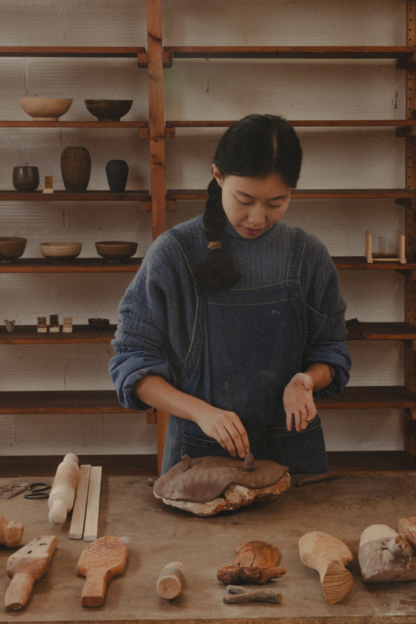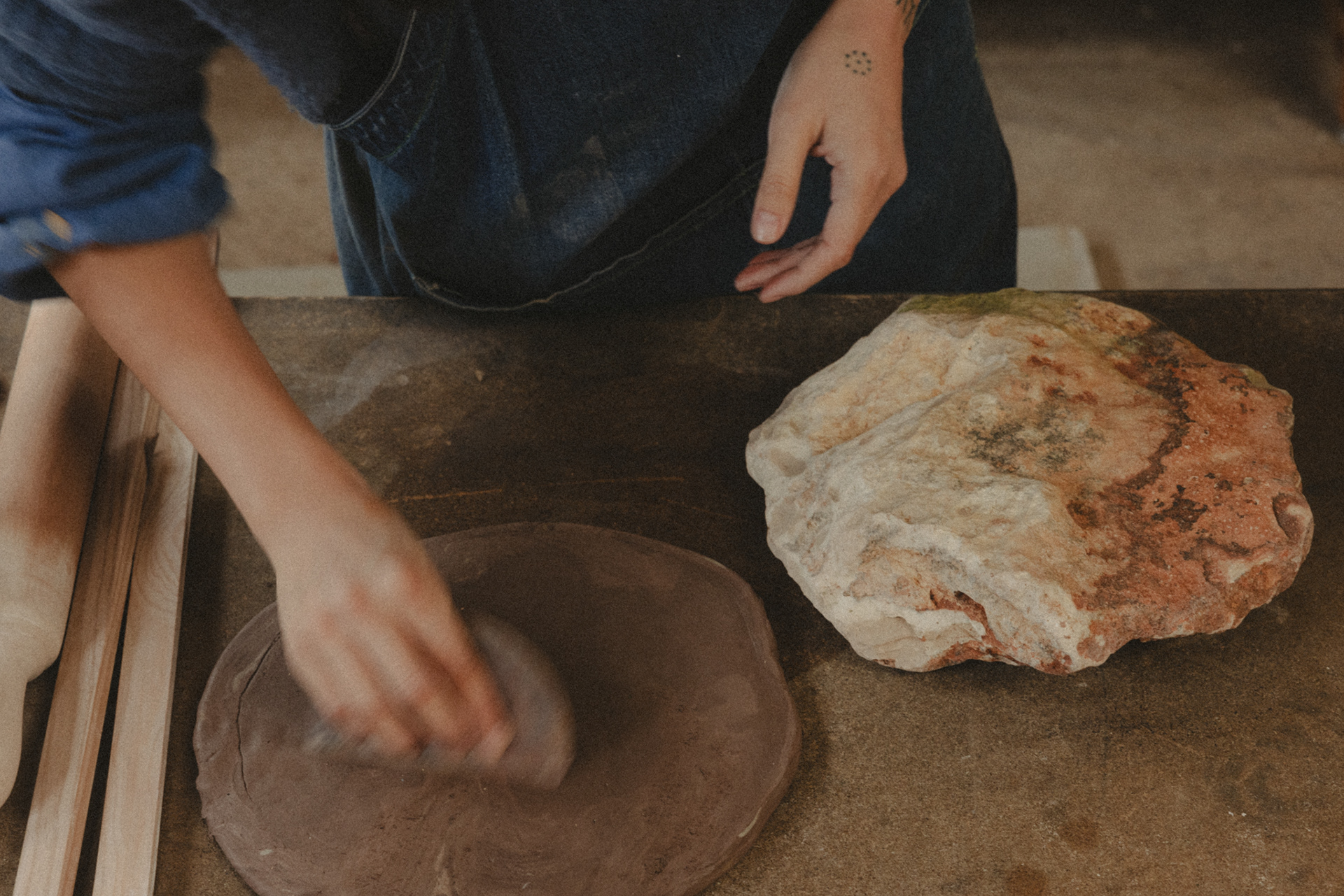 There’s something profoundly moving about watching form emerge: not just the object itself, but the story it begins to carry, the presence it slowly gathers. Observing the traces of the process, the natural tools worn by touch, the quiet concentration in every movement — all reveal the essence of her work. To watch each step. To be there through the process, capturing what exists beyond the finished piece.