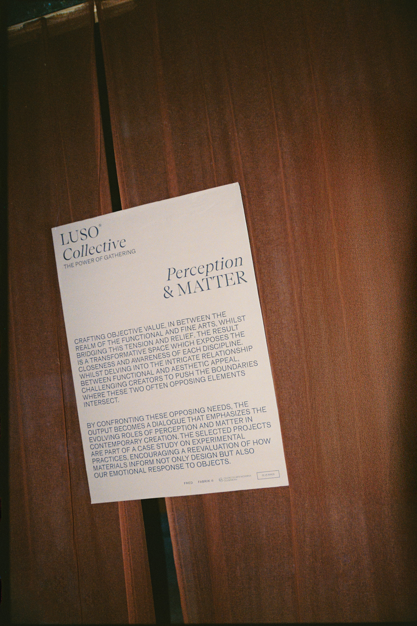 Together with Natasza and Tomás of Further Ther, the souls behind Luso Collective, we entered a space shaped by many hands and visions. Omer Gilony transformed it into a living composition, bringing together designers and collaborators whose works spoke to one another — forming a landscape of dialogue and exchange.