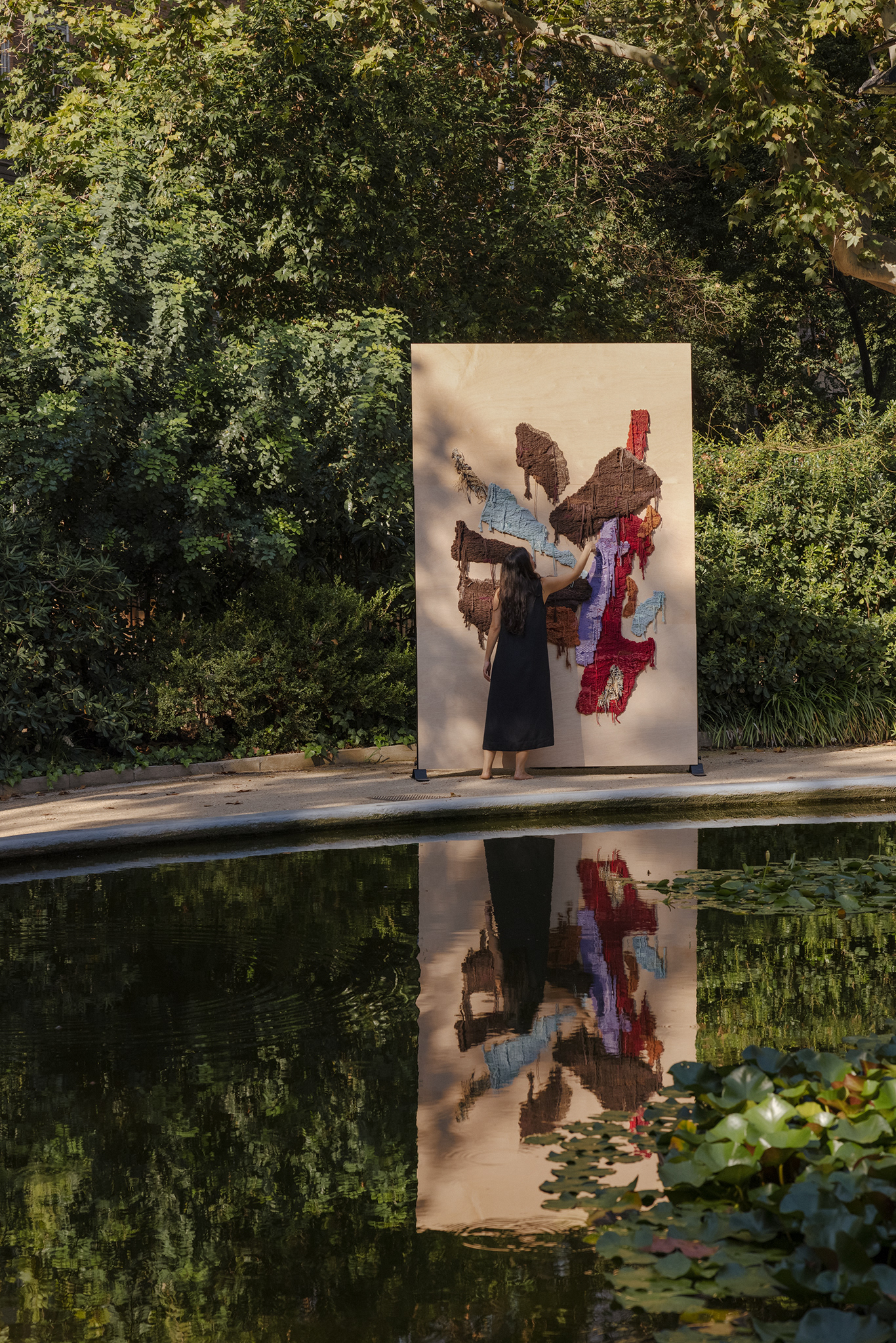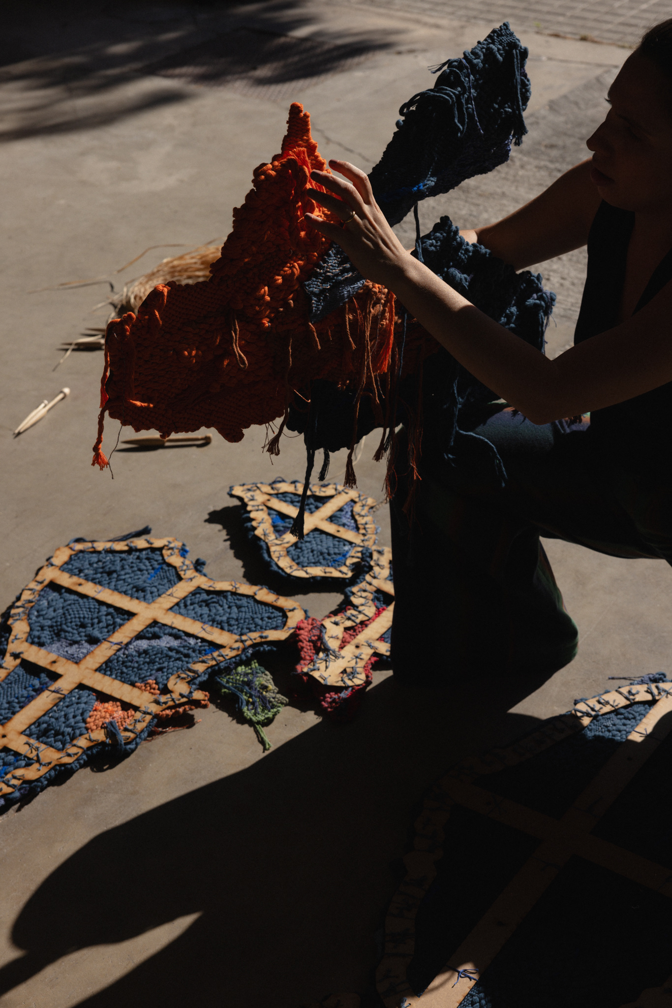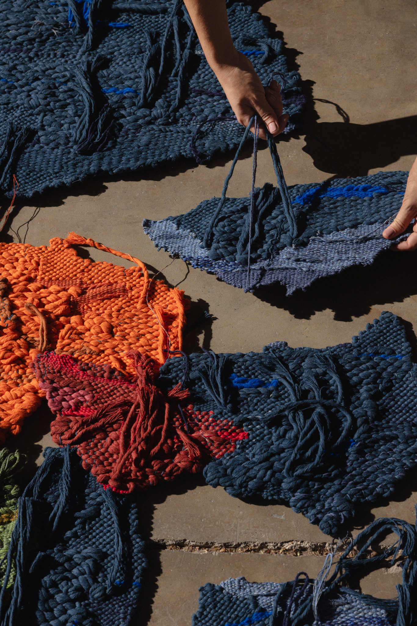 A moment within Maria’s evolving world—a place where weaving, collage, and painting flow naturally from one into another. Inspired by tactile materials and vibrant colors, her work unfolds with energy.