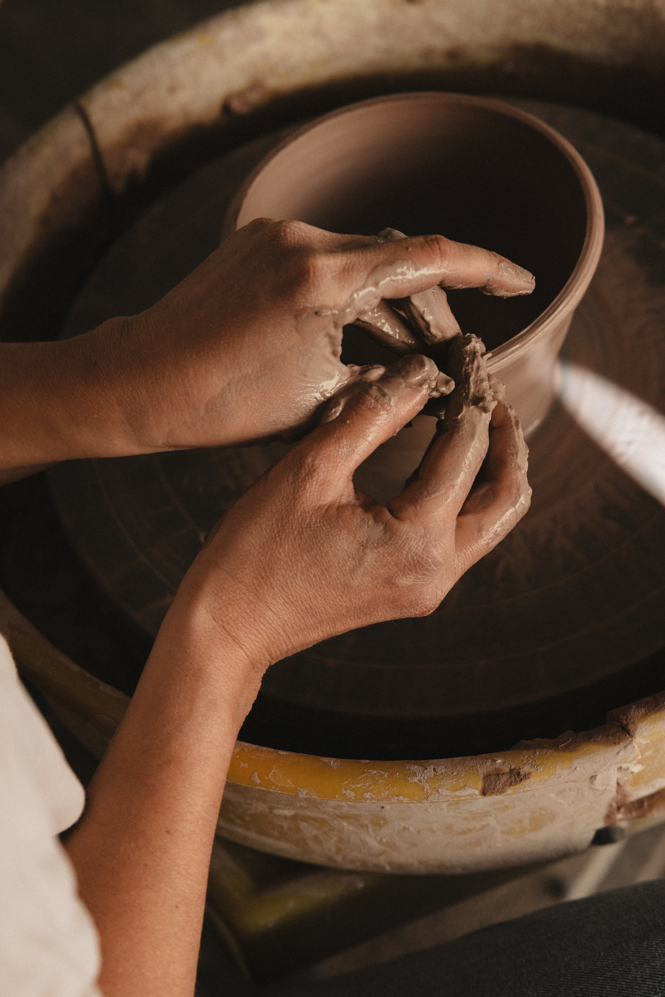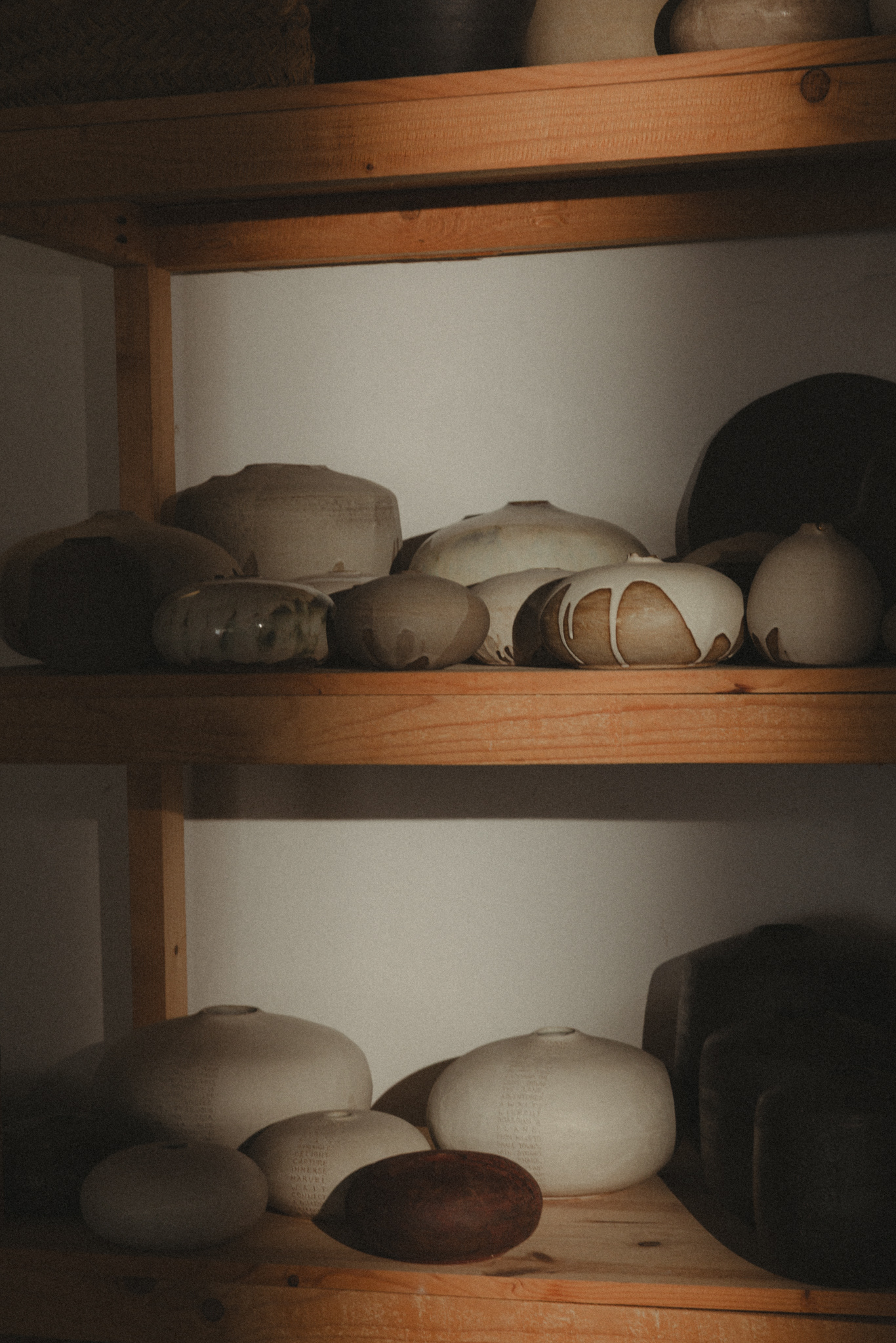 Her new collection moves between presence and erosion: rough edges, shifting textures, glazes that catch the light just enough to make you look closer.