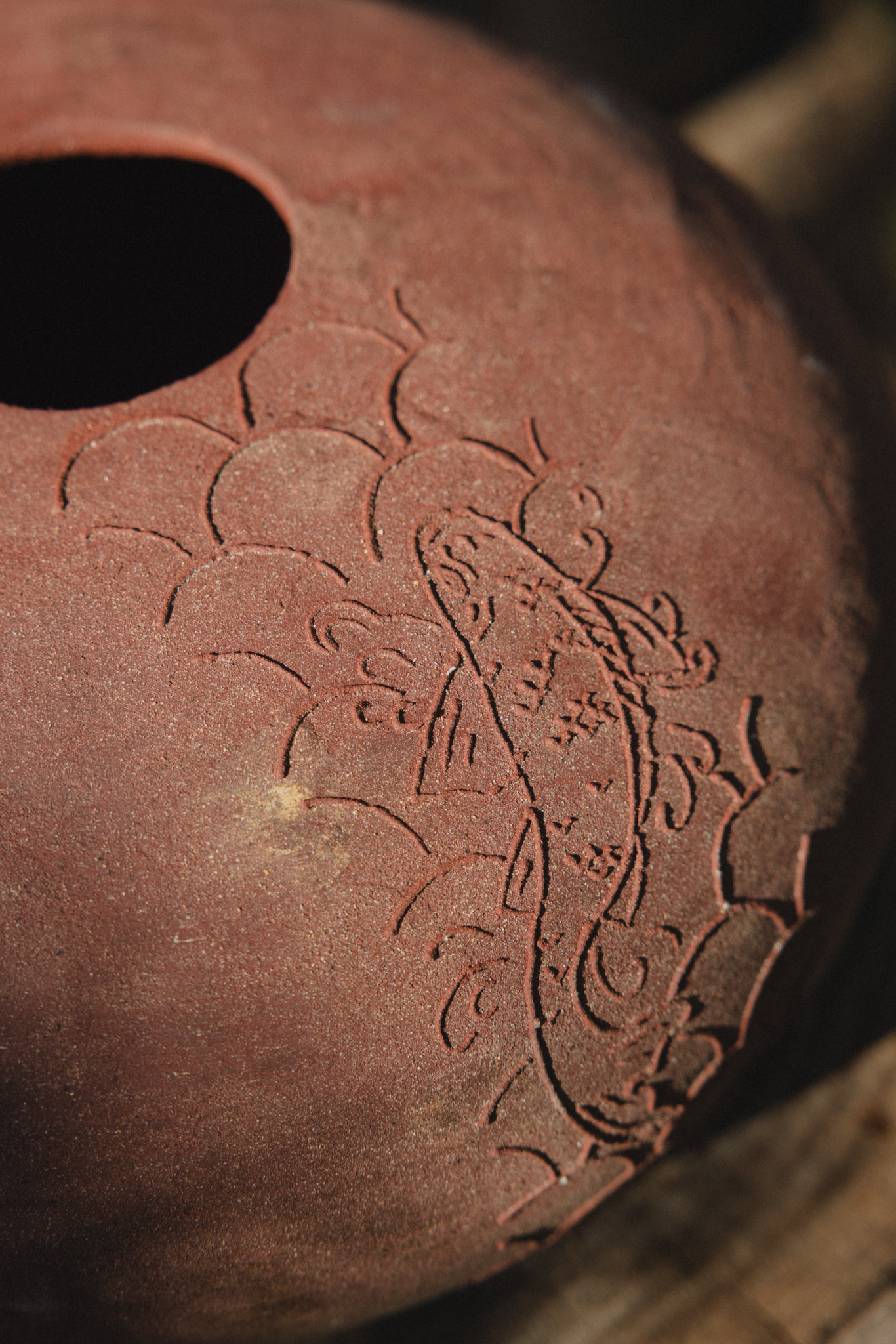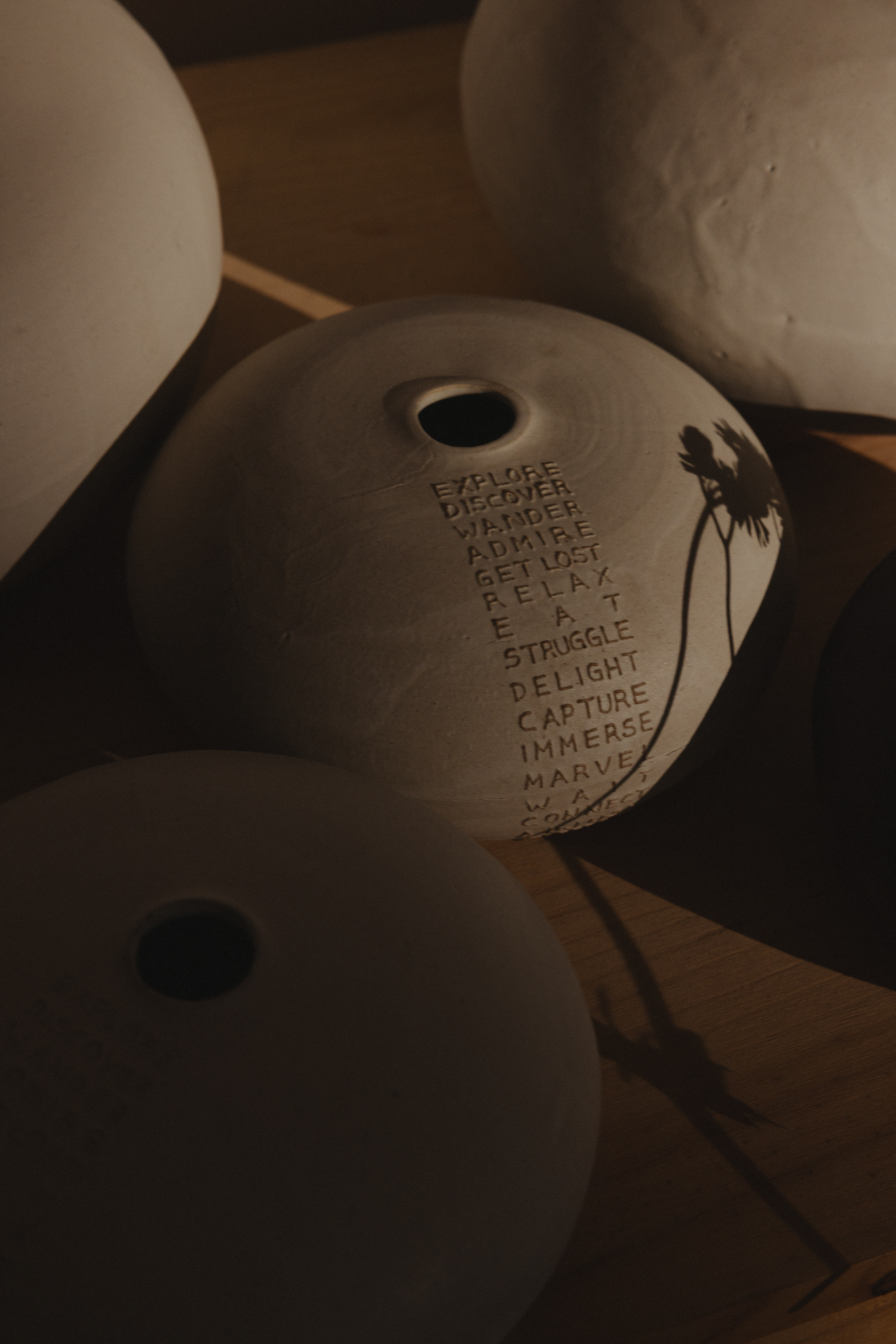 In Marie Martin’s studio, words appear letter by letter, pressed into clay with patience. Each piece is built slowly.