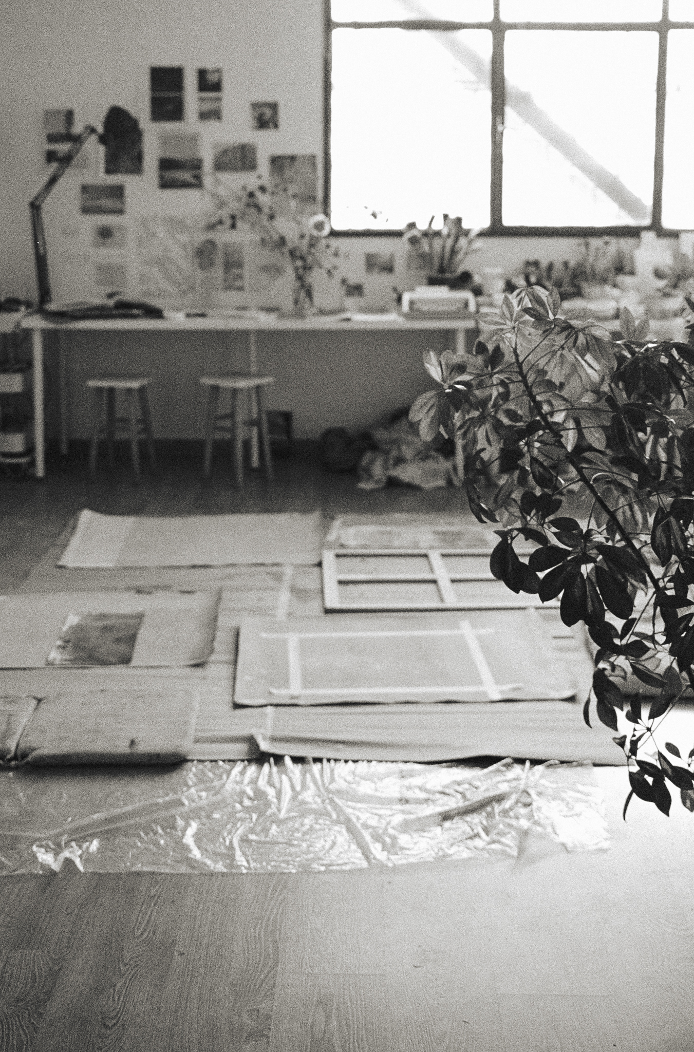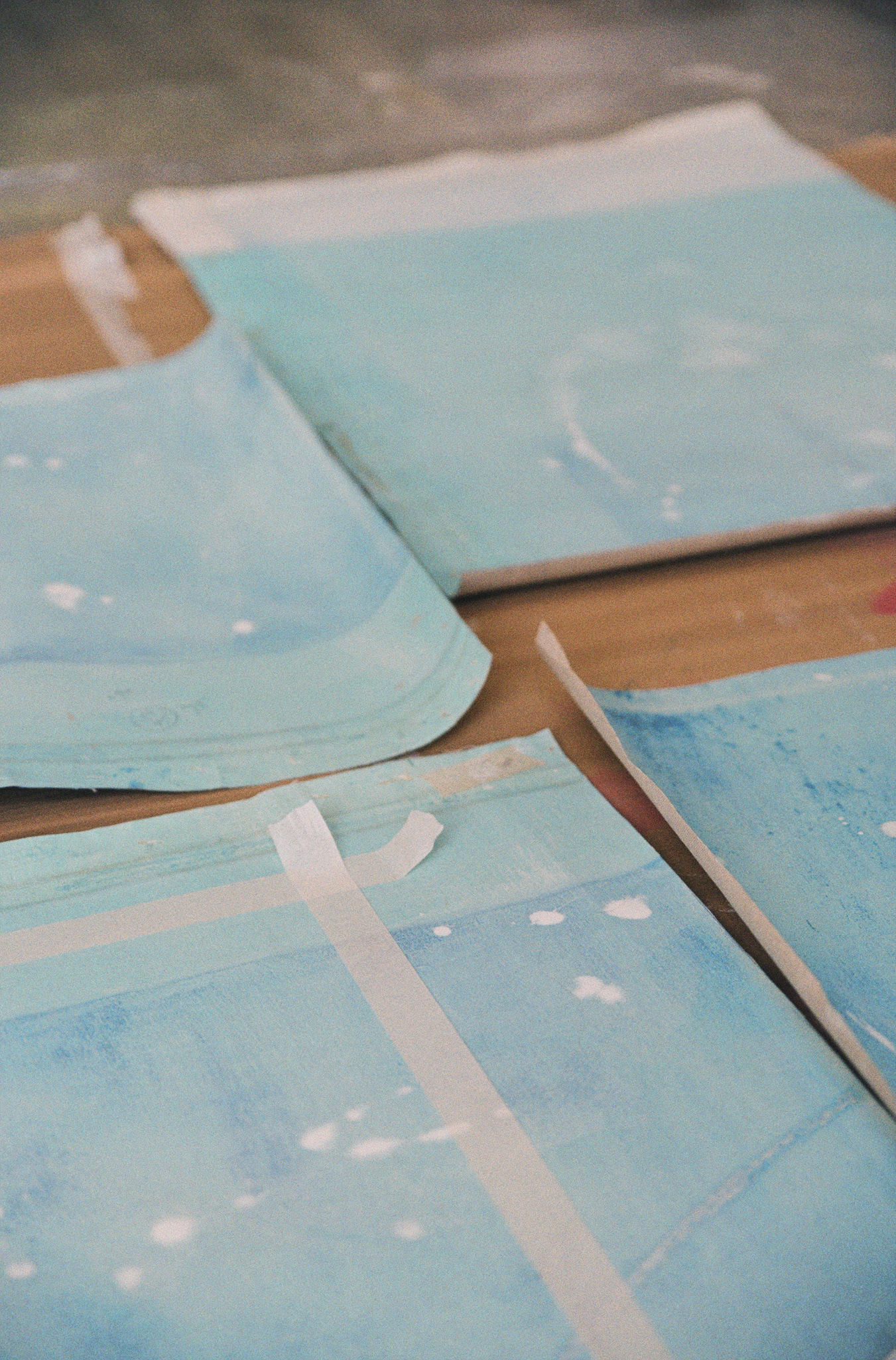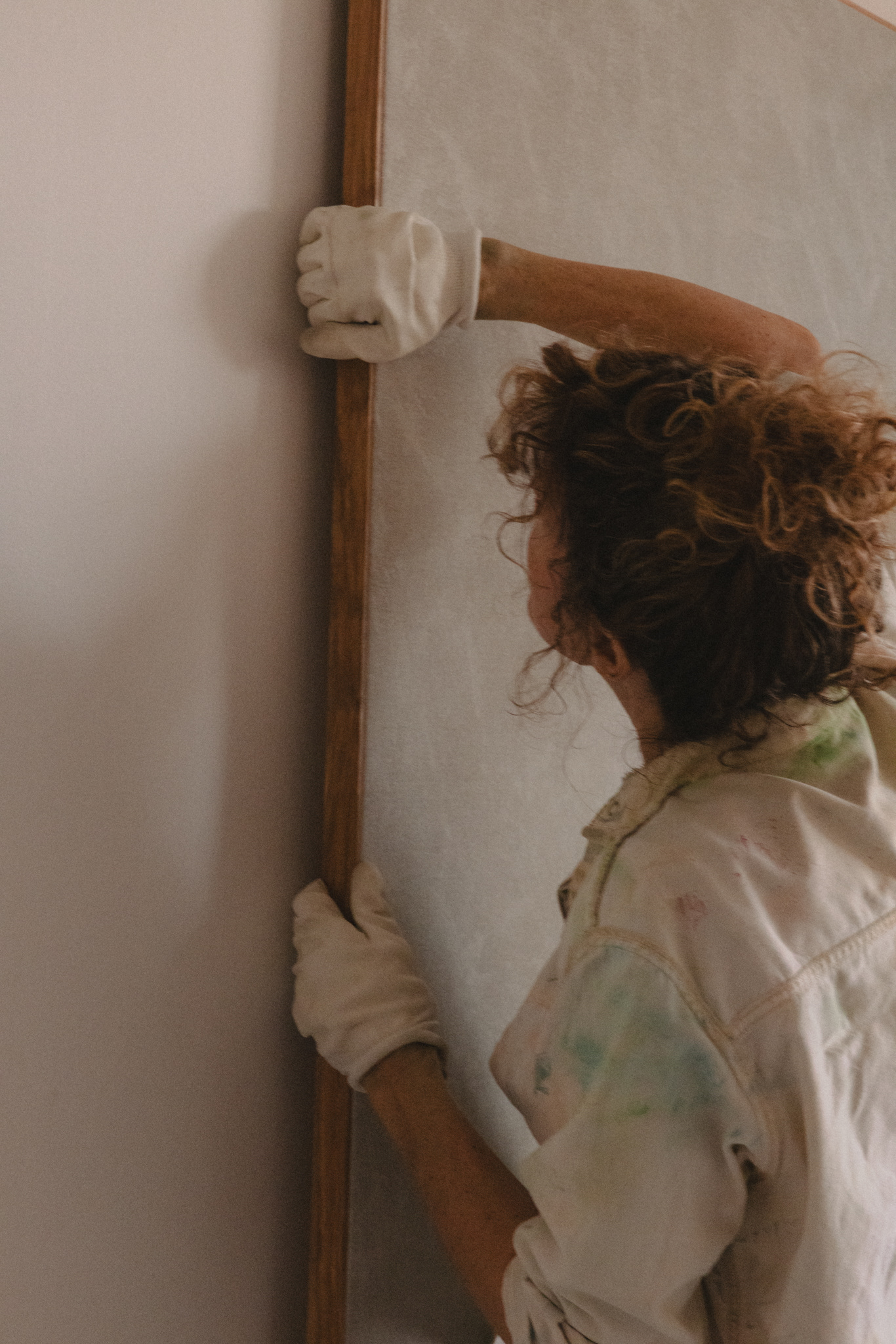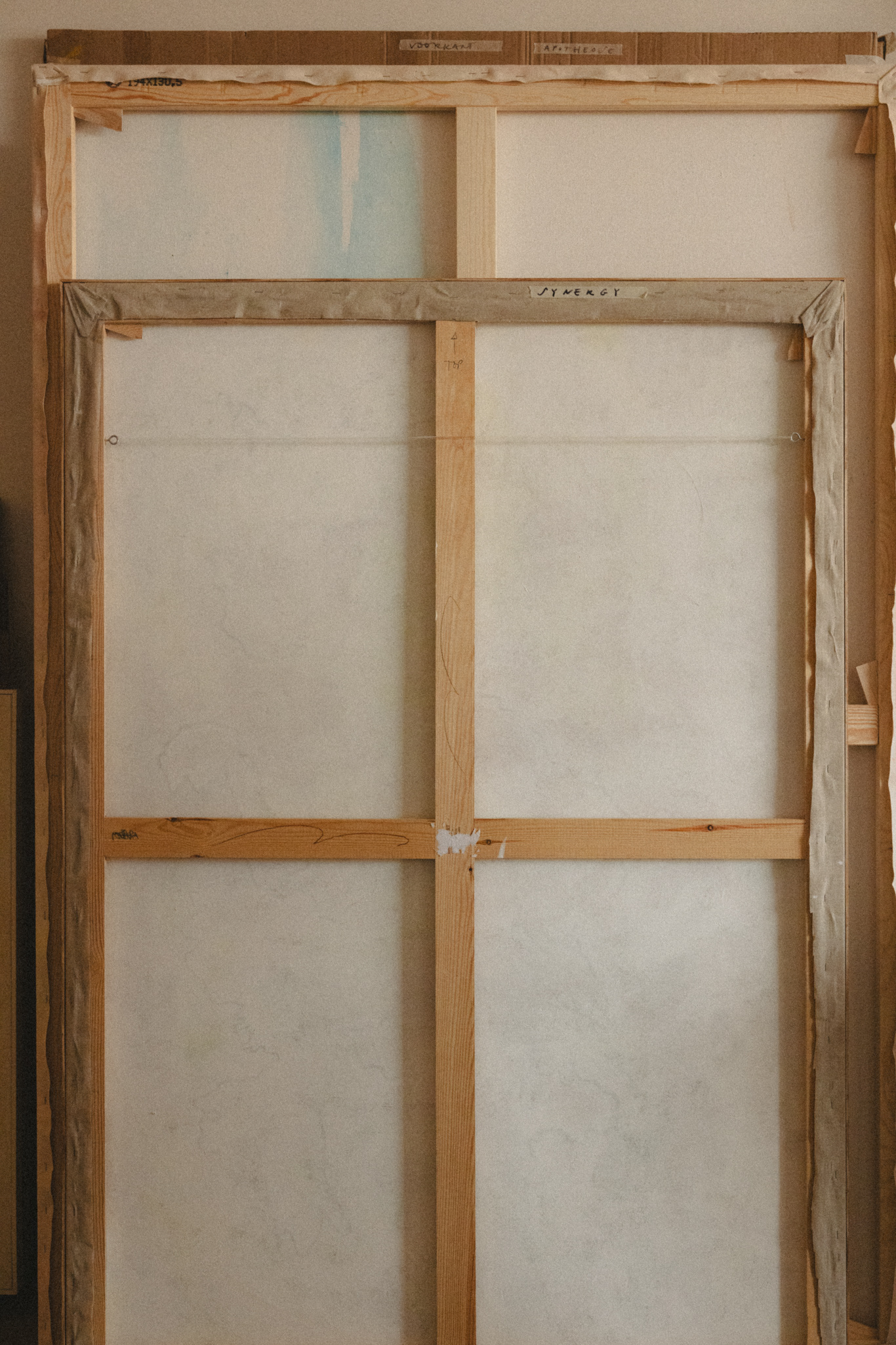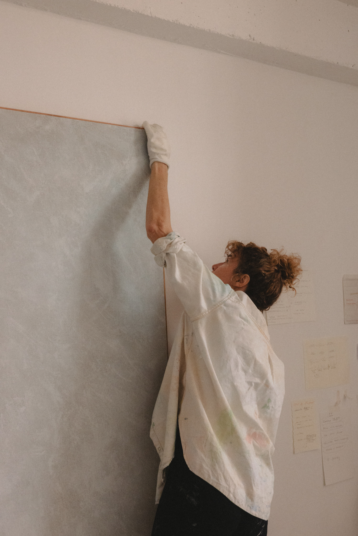 The visit felt like a quiet choreography — paper and canvas, movement and pause. Across the studio, works rested on the floor, hung from walls, loosely rolled in corners. Each one holding its own rhythm, its own weight. Mirthe’s work invites stillness. I looked, waited, listened through the lens.