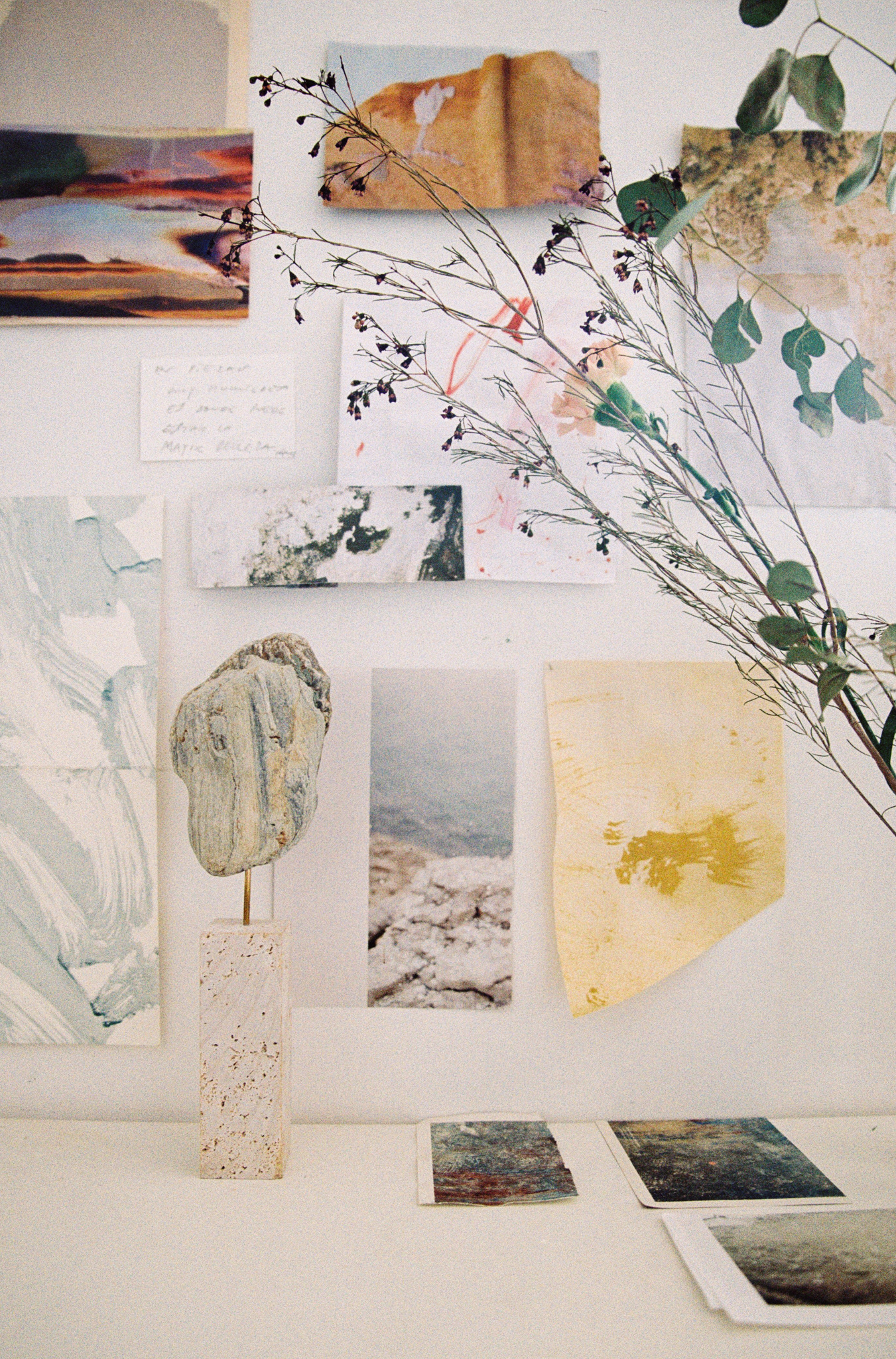 Light moved across the surfaces, tracing texture and colour. Through painting, drawing, collage and sculpture, her language takes form — emotion translated into matter.